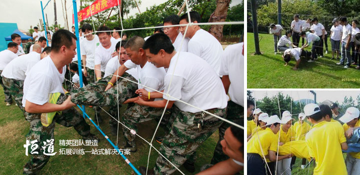 项目简介: 在全体队员面前悬挂一张"电网",网上的洞口大小不一,要求队员在规定时间内,从网的一边依次通过到达另一边。 项目目标: 确立方案,明确分工,有效的组织协调是团队成功的关键。 合适的人安排到合适的位置,是团队有效协作的保证。 相互协调和用心执行,才能保障计划的顺利实施。 感受面对困难时,应有的态度和做事方式。 摆正个人在团队中的位置(角色定位),是团队成功的基础。